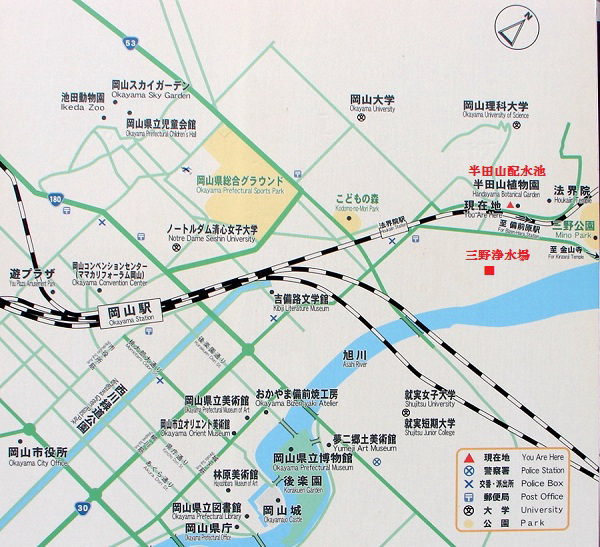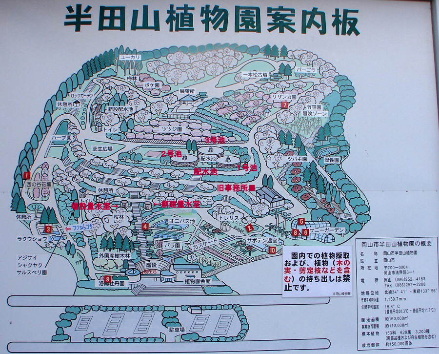 岡山市街を一望できる半田山の丘陵地にある半田山植物園は、半田山配水池用地を利用して整備された、約3200種15万本の花木が植栽されている総合植物園で、頂上付近には一本松古墳、中腹には明治時代に造られたレンガの配水池・量水室・旧事務所<いずれも国登録有形文化財(平成17年2月9日登録)>などがある。開園は、昭和39年5月。