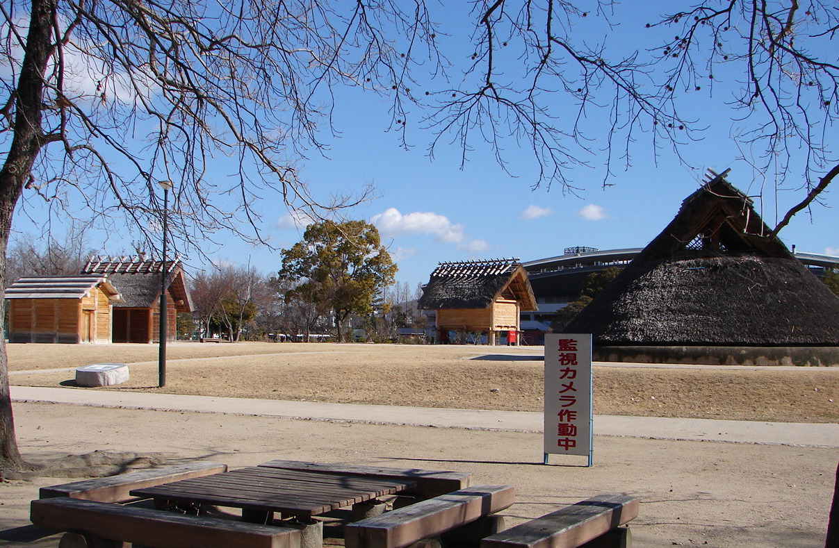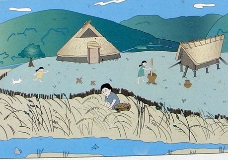 | ■弥生時代の集落復元 発掘調査の成果にもとづき、弥生時代前期に存在した集落(微高地、湿地、水田)を復元 |