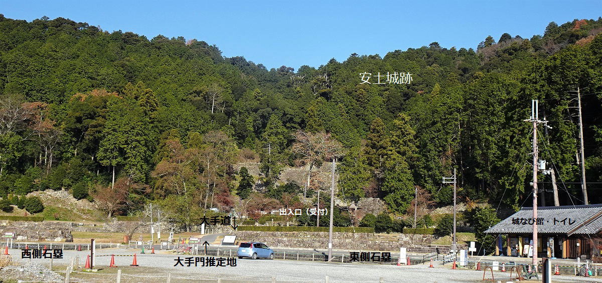 安土城跡南山裾と安土城跡 ![]() ▼次は大手道から主郭部を目指します▼ ![]() 現在は天主台や主要な石垣を残すのみであるが、近年の発掘調査と整備によって 大手道、虎口跡、家臣団屋敷などの姿が明らかにされつつある(安土城考古博物館展示物に追記)。 |