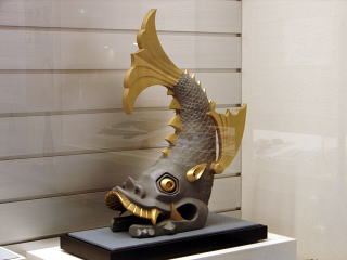 ![]() 鯱瓦の破片から復元された「金箔鯱瓦模型」 |