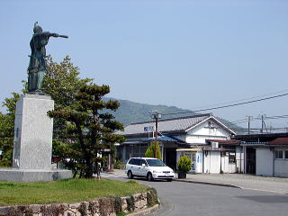 ![]() (左)JR安土駅前の織田信長像 (中)JR安土駅南側にある安土町立城郭資料館 (右)安土城考古博物館 |