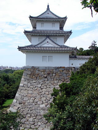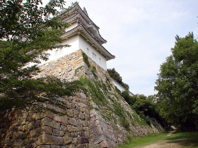 ![]() 二の丸から見た巽櫓 巽櫓の東面で、第三層の妻部に対して、第一層に千鳥破風を置き、第二層は直線としている。 |