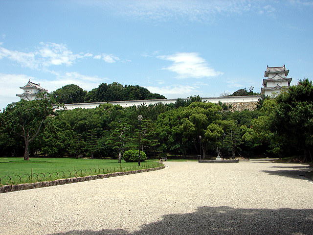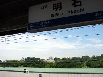 | ■所在地 | 兵庫県明石市明石公園 <JR明石駅より見る明石城>プラットホームからは、本丸の白壁の長塀と左右の坤櫓・巽櫓など、城の中心部がよく把握でき見学スポットの一つ。 明石城へは、JR明石駅から北に歩いて約5分。 |