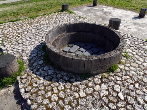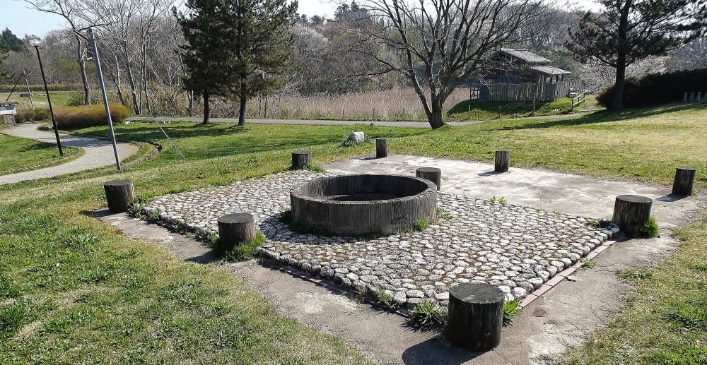 ![]() 井筒も復元された井戸跡 |