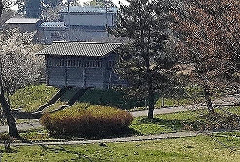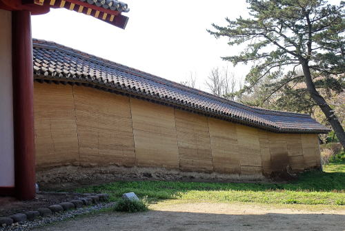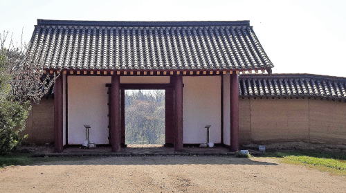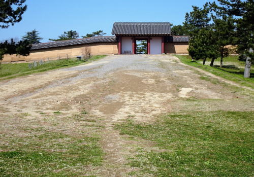 ![]() 政庁側から見た立体復元された外郭東門と築地塀 |