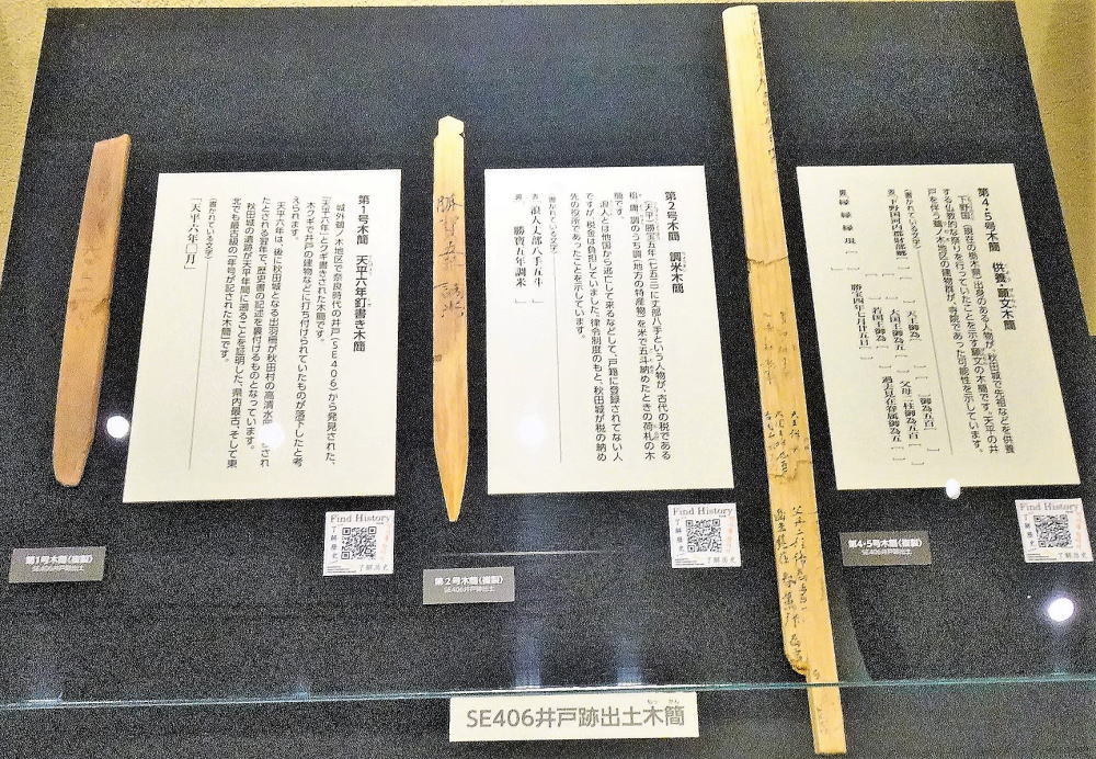 ![]() 井戸跡出土木簡(秋田城跡歴史資料館展示品) |