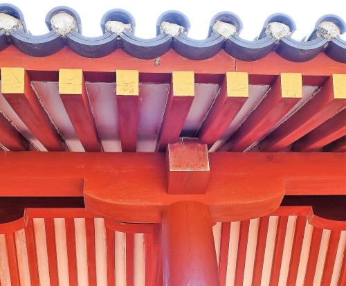 ![]() 軒先の様子と部材をつなぐところの舟肘木 |