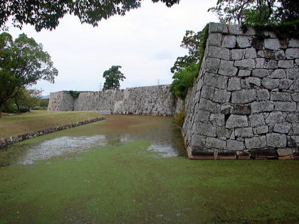 ![]() 潮見櫓台 二之丸東南端に位置し、潮見櫓と呼ばれた二重櫓が存在した。現在は櫓台の石垣のみが残されている。南沖櫓とともに海上監視のための櫓で、城南面の守りを固めていた。 |