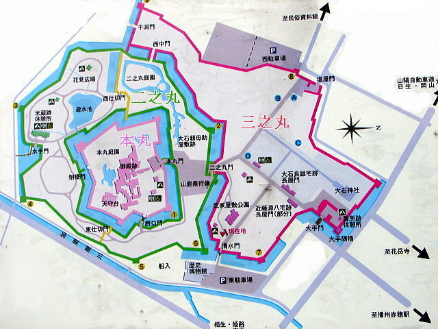 ![]() 現在の赤穂城広域周辺図 ![]() |