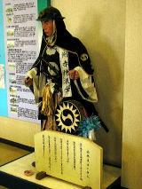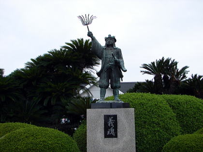 ![]() 大石内蔵介良雄像 JR播州赤穂駅前のロータリーに建つ。内蔵介は討ち入りの装束に身をまとい、手にもつ采配を大きく振り上げている。 |