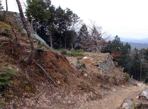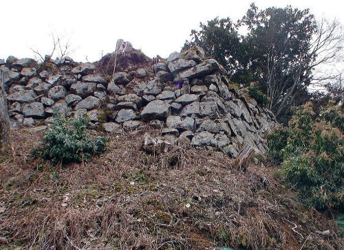 ![]() 第二曲輪石垣と頂上は主郭(本丸) |