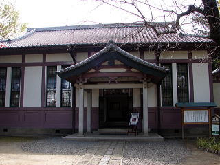 (下)遺蹟図書館 足利学校が廃校になった以後、明治三十六(一九〇三)年に開設され、書物を継承し現在に引継がれている。現在の建物は大正四(一九一五)年に建てられ、市重要文化財に指定されている。