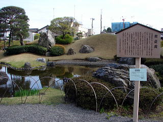 (右下)庭園 池と築山からなる築山泉水式庭園。平成二(一九九〇)年に復原。