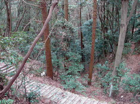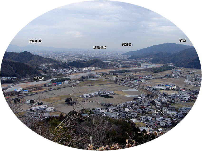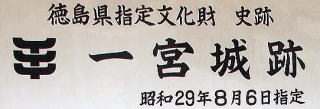 | 【形状】 一宮城は、前方に鮎喰川、後方に険しい山々がそびえ立つ自然の要害に築かれた大規模な山城であった ![]() 【歴史】 一宮城は暦応元(1338)年、小笠原(一宮)長宗による築城とされ、鮎喰川の清流を前に臨み、背後には重畳たる山岳を控える県内最大級の山城跡である。 一宮氏の山城として整備されたが、天正10(1582)年、長宗我部元親の侵攻を受け、また、天正13(1585)年、豊臣秀吉の四国征伐時には、鮎喰川を挟んだ辰ヶ山に陣を構えたとされる豊臣秀長と長宗我部元親との攻防の舞台となった。同年、豊臣秀吉の命により阿波に封ぜられた蜂須賀家政は一宮城を居城としたが、翌年、徳島城に移ると徳島城の支城(阿波9城の一つ)として、家臣の益田長行に守城させた。元和元(1615)年の徳川幕府の一国一城令によって、寛永15(1638)年廃城となった。 現在、標高144mの山頂の本丸を取り巻くように、明神丸、才蔵丸、小倉丸、椎ノ丸、水ノ手丸などの曲輪、堀や土塁が遺存し南北朝時代から戦国時代にかけての山城の荒々しさと、それを守っていた当時の武士の剛健な気風をしのばせる。現地点から約600mで本丸跡に至る。また、山麓の寄神社周辺は「御殿居」と呼ばれ、城主の居館跡であるとの伝承が残っている。 (文と画像は現地説明板より) |