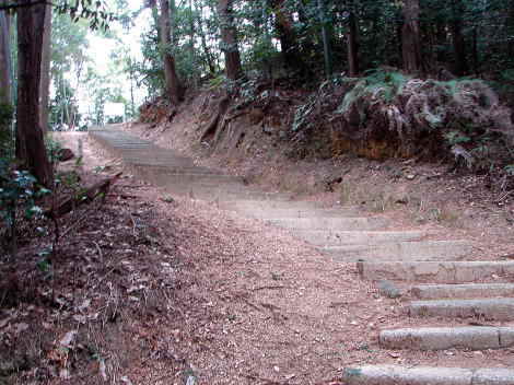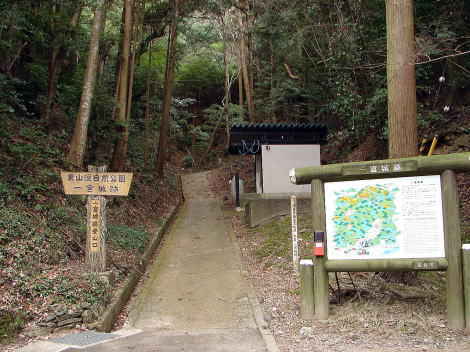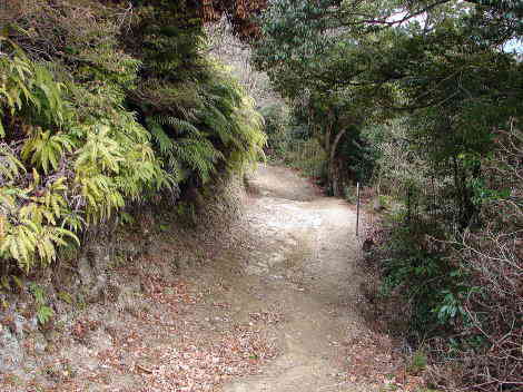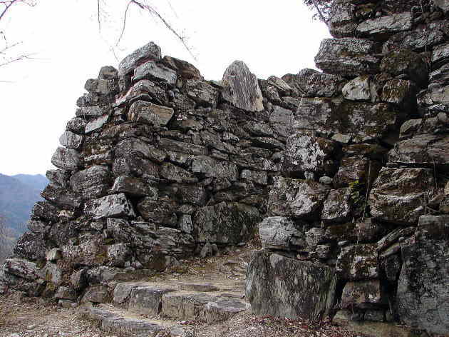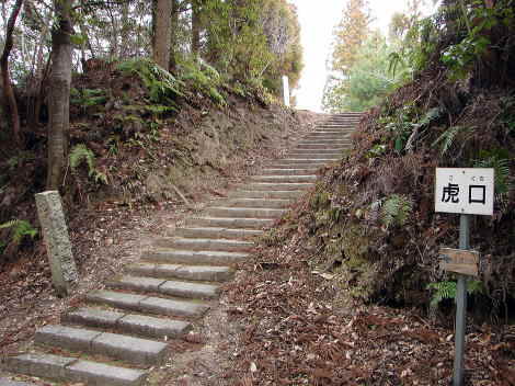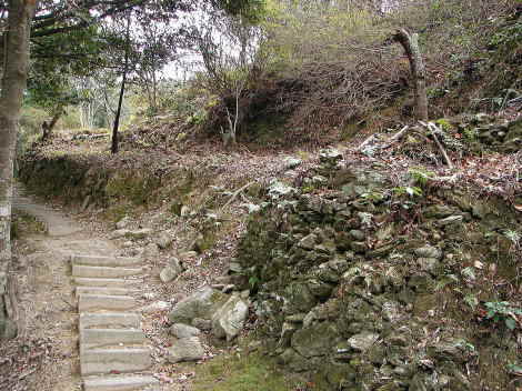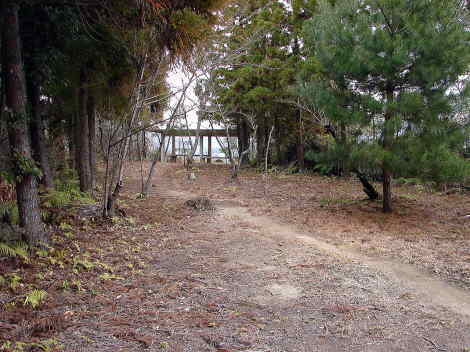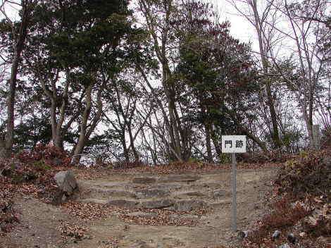 ![]() 門跡 左に行くと本丸跡、右に行くと明神丸へと至る。 |
