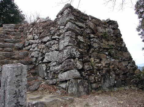 ![]() 本丸石垣 随所で屈曲する石垣は、すべて鋭角となっている。 |