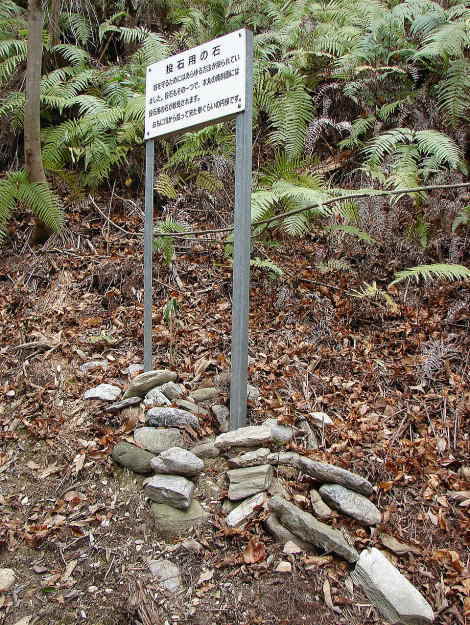 ![]() 釜床跡(かまとこあと) 北の斜面は石垣で築かれており、釜床には石組が1基残っているが、以前には数基並んでいた。 |