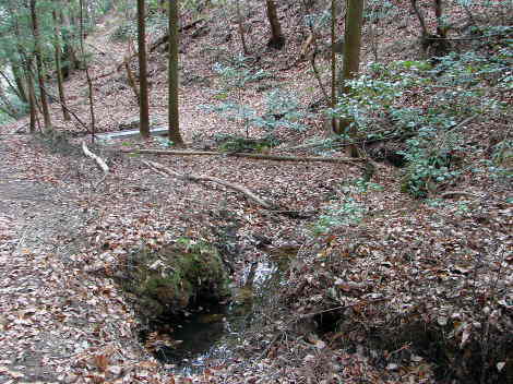 ![]() 湧水 城の周辺では所々に小さな湧き水がみられます。この湧水は最近のものですが、当時、山城では水の確保に苦労していたことが偲ばれます。 |
