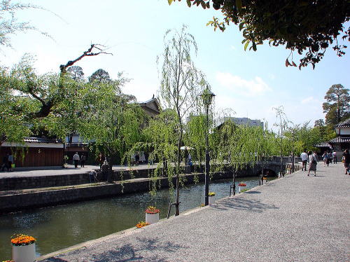 ▲倉敷川に架かる今橋辺りの風景〜倉敷川右奥は旧大原家住宅、今橋の左は大原美術館。