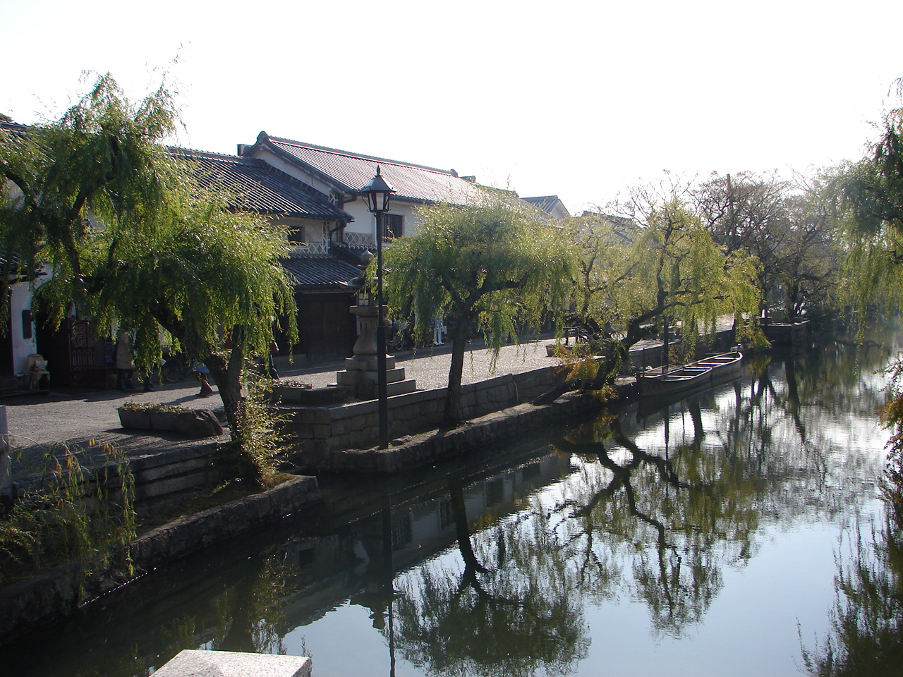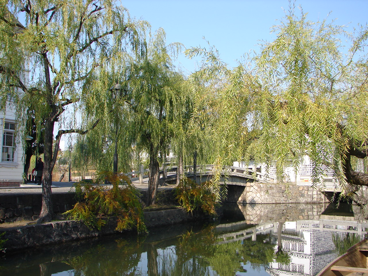 美観地区の柳並木は、今橋〜中橋〜高砂橋にかけての倉敷川沿いに並ぶ。「倉敷美観地区」と呼ばれ、親しまれているこの一帯は、文化庁から国の重要伝統的建造物群保存地区として選定されている。江戸時代、幕府の直轄地である「天領」であったことから倉敷には代官所が置かれ、倉敷川畔を中心に、備中国内の米や綿花などの物資の集散地として栄えた。白壁に貼り瓦を施した蔵や町屋が並ぶ一帯は、倉敷川の舟運により築かれた商業都市の名残りである。