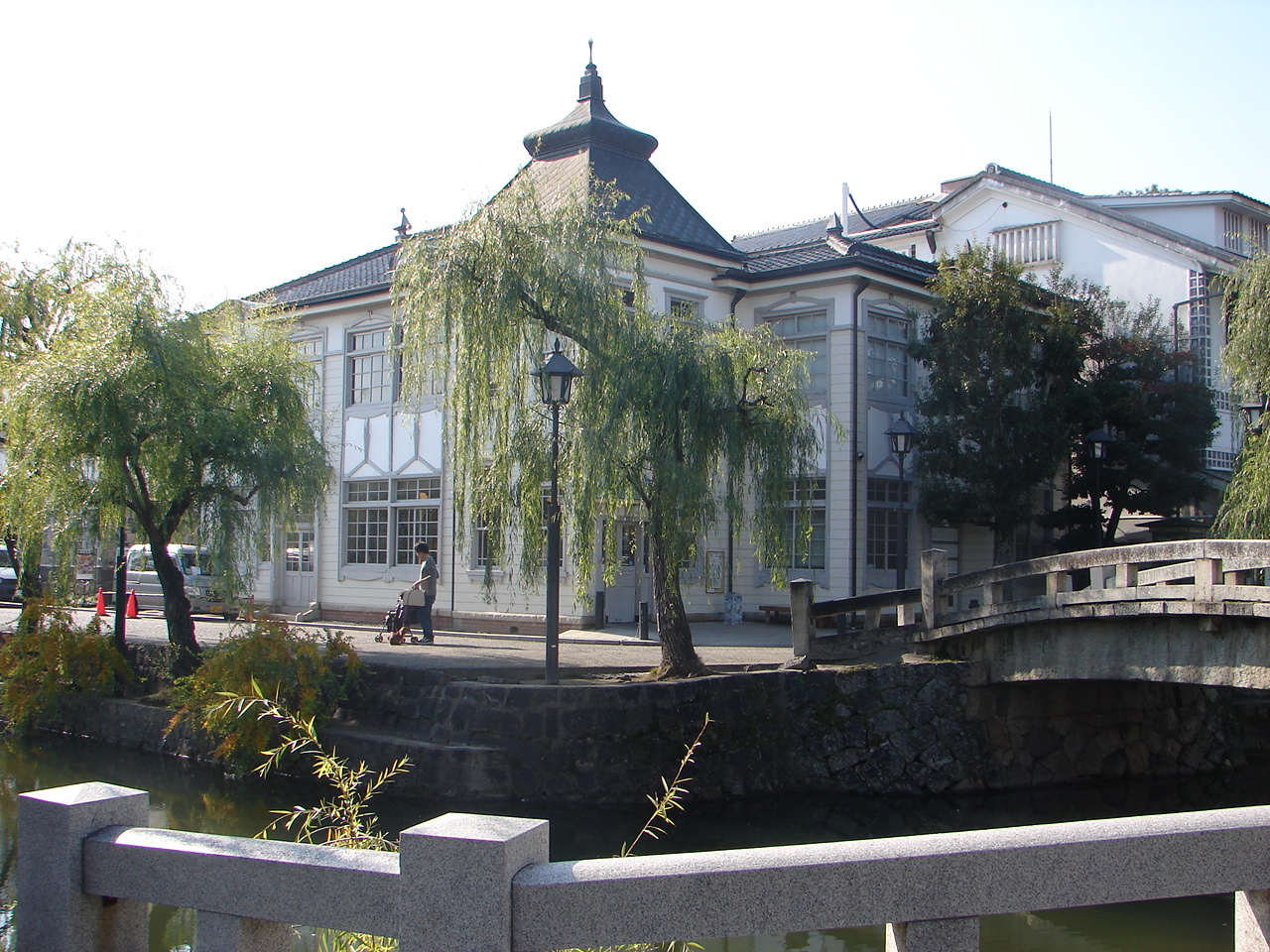 ▲中橋と倉敷館〜倉敷館は、大正6年に倉敷町役場として建てられた擬洋風の建物。現在は観光案内所・休憩所として利用され、建物は国登録有形文化財に指定。