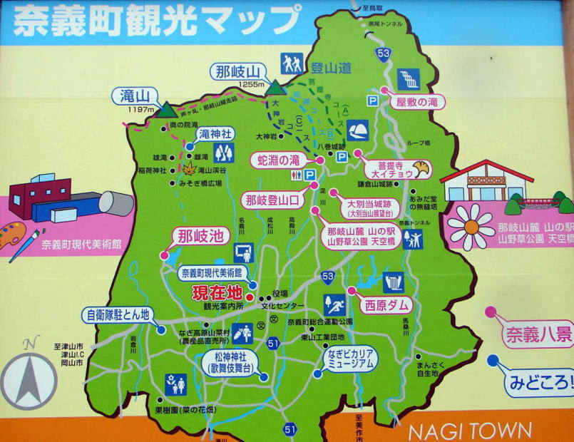 ![]() 那岐山麓「山の駅」 奈義町の恵まれた自然を体験することができる「那岐山麓山の駅」は農業体験や手作り体験ができるよう、コテージや研修室を併設した滞在型リゾートスポット。館内には特産品ショップや、地場の食材を生かしたレストランなどがある。 |