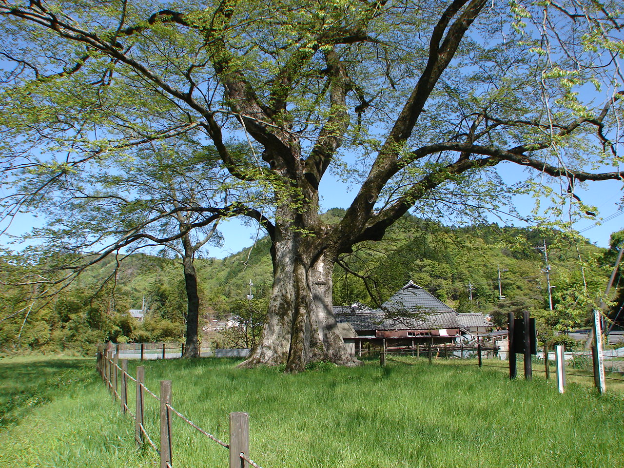 ![]() このムクノキは樹齢約1000年、幹の太さは目通り周囲9.4m、樹高25m、枝張りは南北30mあって岡山県下最大のムクノキです。ムクノキは関東以西の本州、四国、九州に分布し、山地にも生えますが、しばしば人家付近や道路わきに植えられます。5月の若葉が伸びる頃、淡緑色の小さな花を付け、秋には直径12mmほどの黒い実を付け、この実は甘くて食べられます。ムクノキは家具等に使われる他、葉は細工物を磨くのに使われます。 【所在地】美作市滝宮 【アクセス】JR林野駅から約16.5Km ![]() |