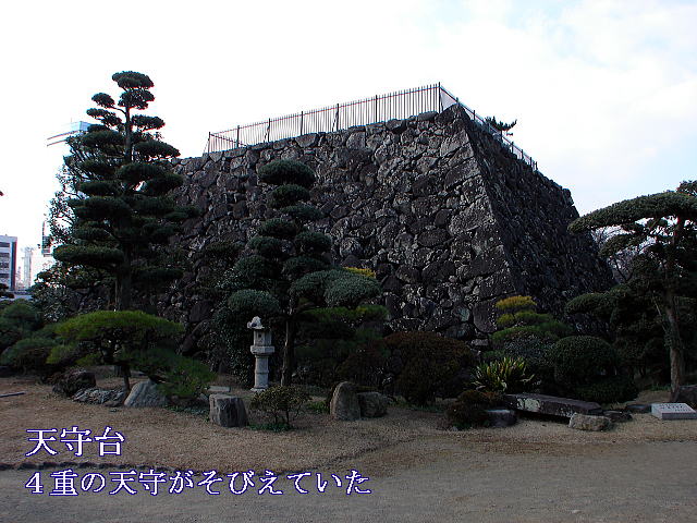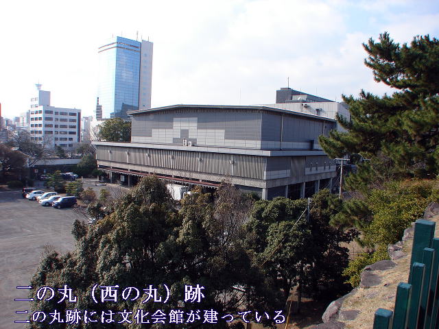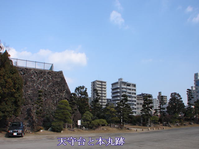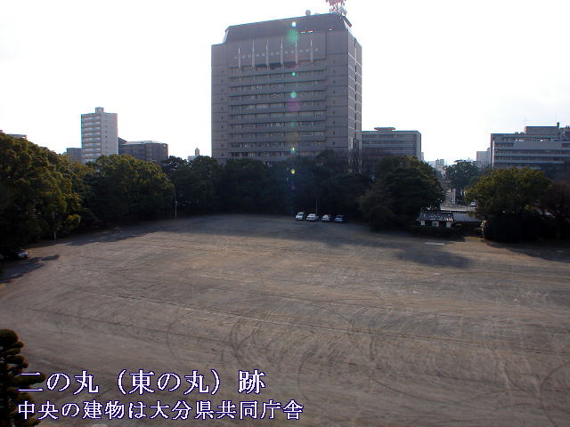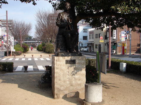 遊歩公園に建つ瀧廉太郎銅像〜この場所は、瀧廉太郎終焉之地で、彼が明治35年12月、ドイツ留学より帰朝し、病を養った稲荷町の自宅の跡である。ここで養病半歳、明治36年6月29日遂に永眠した。後方は府内城三の丸跡。