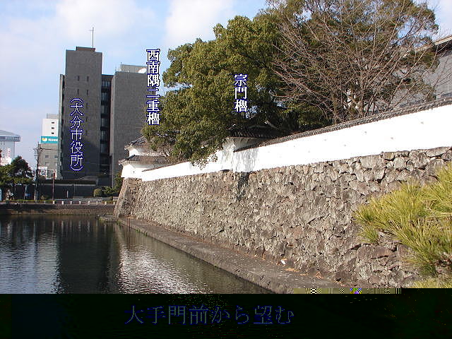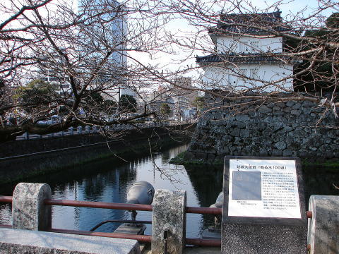 建設大臣賞「甦る水100選」〜受賞を受けた「フレッシュアップ府内城」は府内城のお堀を公共下水道の処理水を再利用し浄化する事業(アメニティ下水道事業)で昭和63年5月に完成したものである。