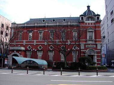 赤レンガ館。1913年(大正12)に完成したレンガ建築。現在、大分銀行の支店として利用されている。