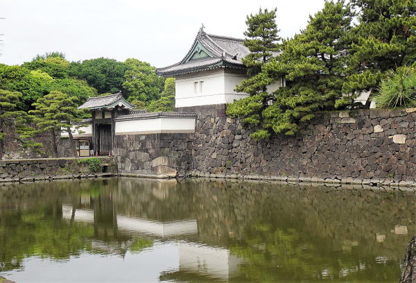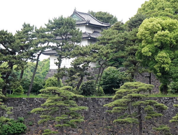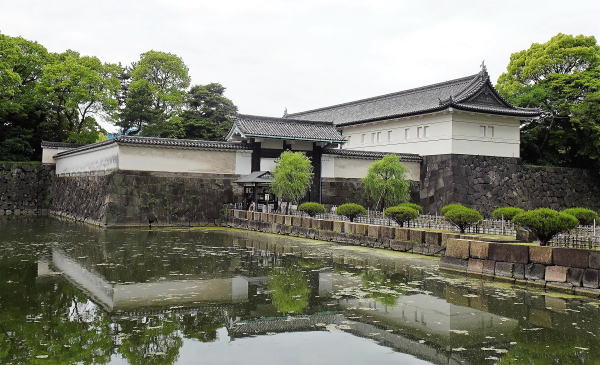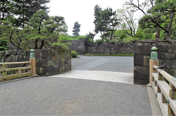 【手前から桜田二重櫓(巽櫓)・桔梗門・富士見櫓。濠は桔梗濠】![]() この辺りも立入禁止区域となっており外観を眺めるだけです。 |