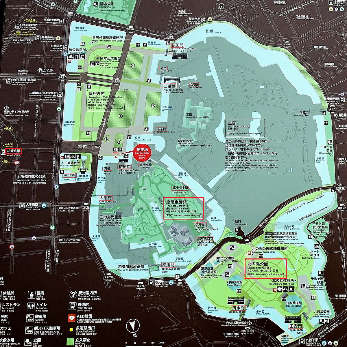 | 【別名】千代田城 【所在地】東京都千代田区千代田 【地形種類】平城 【文化財史跡区分】国特別史跡(江戸城)。 重要文化財(外桜田門[櫓門・高麗門]、清水門[櫓門・高麗門]、田安門[櫓門・高麗門])。 【現存櫓】桜田二重櫓(巽櫓) 富士見櫓(三重) 伏見櫓(二重)の3基。関東大震災で損壊後、解体・復元された。富士見多門、同心番所、百人番所、大番所なども、宮内庁管理のため重要文化財には指定されていないが現存。 【登城アドバイス】 江戸城は皇居となっているため、全域を見学することはできない。一部を「皇居東御苑」として、一般公開。 休園日は月・金曜日と年末年始。また行事の実施等で支障のある日。 公開時間は午前9時〜午後4・5・6時(季節によって異なる)。 【訪問日】2022年5月(2回目)。JR東京駅から徒歩にて訪城。 |