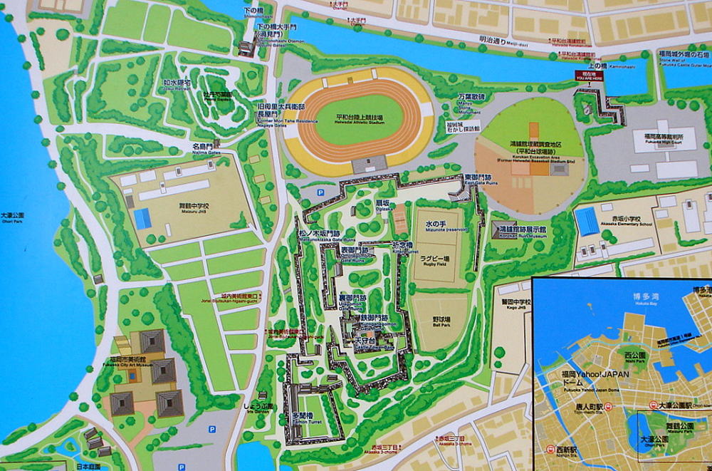 | 所在地 | 福岡県福岡市中央区城内(城跡・大堀跡はそれぞれ舞鶴公園・大濠公園として整備)![]() ※アクセス〜JR博多駅から地下鉄空港線「赤坂駅」又は「大濠公園駅」下車、徒歩5分 |