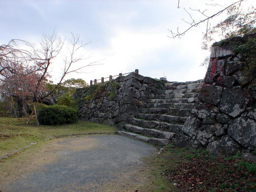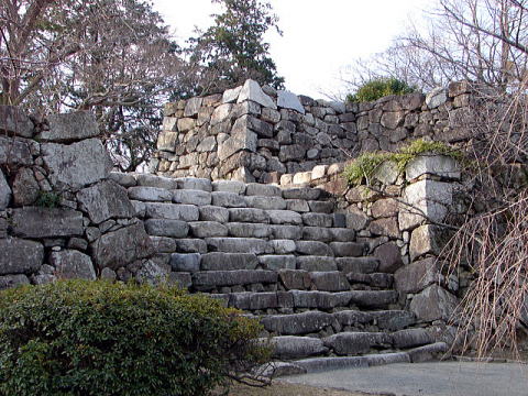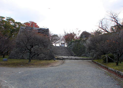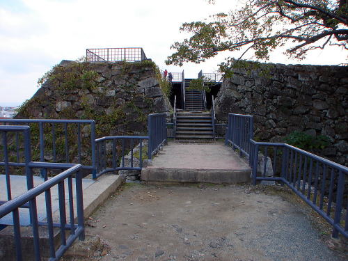![]() ▲小天守台への石段〜福岡城には、大・中・小、3つの天守台が存在。石段左が小天守台跡、右が中天守台跡。 |