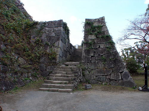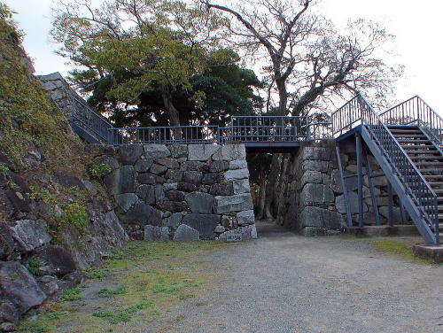 ![]() ▲裏御門跡〜本丸への入口のひとつ。この門の左手にある石垣は、古時打櫓台にあたり、二層の古時打櫓(時櫓、太鼓櫓等とも呼ばれる)があったようです。近年、古写真や文献等による調査で、下之橋御門に隣接する「潮見櫓」(伝潮見櫓)と伝えられてきた櫓こそ、この古時打櫓である可能性が高くなり、本来の潮見櫓は解体保存されている櫓であることが判明しています。 |