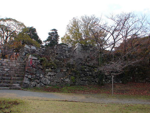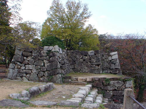 ![]() ▲月見櫓跡〜石垣上が月見櫓跡です。その南側には小天守台・中天守台・大天守台が残る。 |