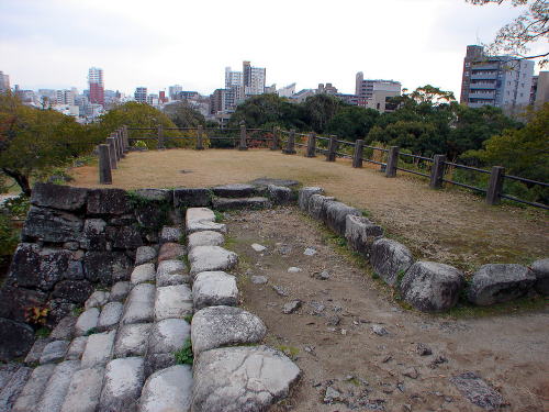 ![]() ▲大天守台跡と展望台〜天守台は展望台になっていて、福岡ドームや福岡タワー、天神のビル街など福岡市内を一望することができます。 |