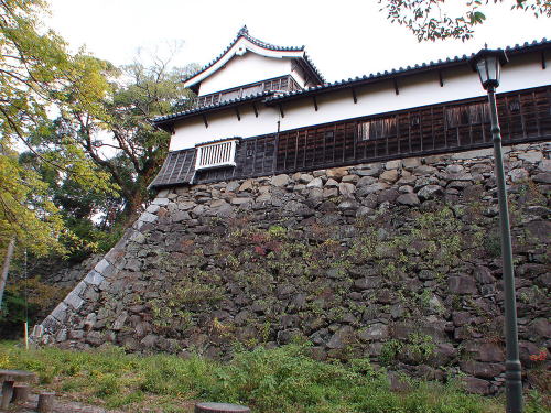 ![]() ▲南西隅の二層の隅櫓〜城内から見て左側にある櫓。二重二階の切妻造り。二重二階の隅櫓から右(北)に一層多聞の平櫓が連結しており、その右端は、右写真となる。 |