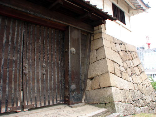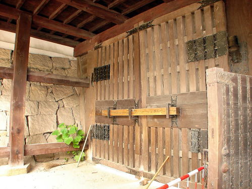 ![]() 筋鉄御門内側の扉部分 右側には脇戸の扉が見えている。 |