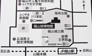 ■福山城周辺図![]() JR福山駅北口より徒歩5分。 ※福山城博物館(天守閣) |