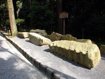 ![]() 参拝道に展示の伏見城石垣 |
