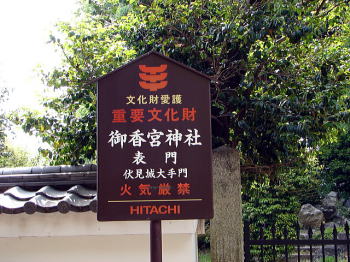![]() 御香宮神社の表門 この門は、伏見城の大手門の遺構で、近鉄京都線「桃山御陵前」駅東側、大手筋に面して建っている。 |