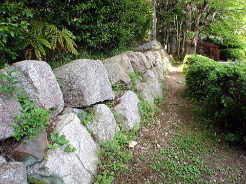 | 遺 構 | 移築門・櫓、石垣、堀 廃城後、徹底的に破壊されて跡形も無くなり、幻の城といわれ、地上の石垣なども解体され持ち去られた。 |