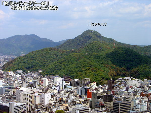 【所在地】岐阜市金華山![]() <交通>JR岐阜駅からバスで約15分。金華山ロープウエイで山頂駅まで約3分。山頂駅から天守まで徒歩約8分。 <情報>JR岐阜駅北口駅前広場に隣接する岐阜シティ・タワー43の43階(地上152m)には無料展望室があり、金華山と岐阜市街の雄大なパノラマが楽しめます。 |