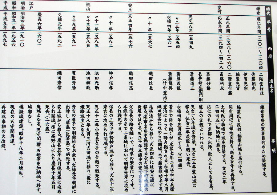 | ◆岐阜城の歴史◆ (現地説明板より転載) |