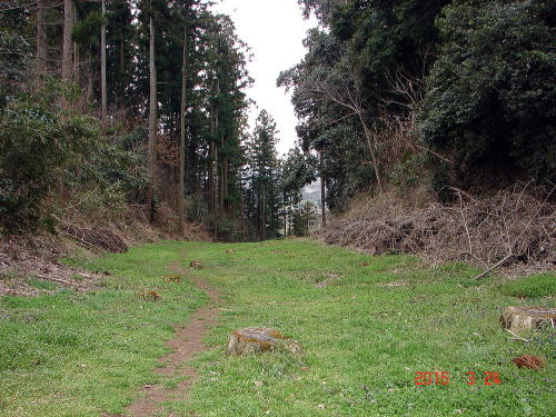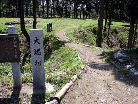 ![]() 大堀切と郭馬出(右上の平坦地) 以上、3点の写真は以前訪問した時に撮影したものです。 |