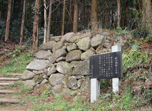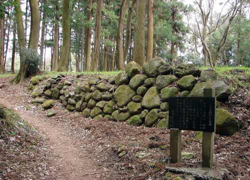 ![]() 三の丸門跡と石垣 城中の石垣で、比較的よく残っているのはここである。三の丸は二の丸の外にある郭である。入口の三の丸門には両側の石垣の上を渡した櫓があり、その下が通路であった。 |