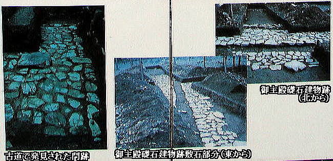 ●八王子城跡の調査は、昭和52年(1977年)以来継続的に行なわれ、現在に至っています。発掘調査などの結果からは、大規模な普請(造成工事)が行なわれていること、石垣など当時としては最新の技術で造られていることなどがわかってきました。また、御主殿は15m以上も盛土して館を構えていることが確認されました。内部に建物の跡や石敷きの通路なども発見されている。 現在八王子市教育委員会では、これらの調査結果をもとに、史跡の保存と活用を目的に、当時の八王子城の再現を目指して整備を行なっています。今後とも広く市民に公開し、八王子の大切な歴史遺産として、保存と活用を図っていく考えです。(写真と文は現地説明板より) |