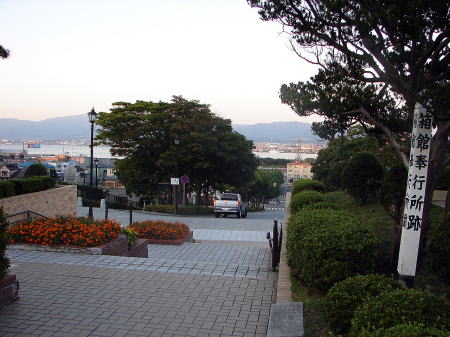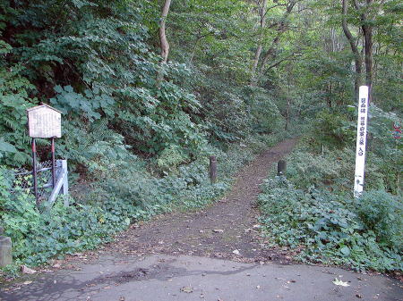 ![]() 函館八幡宮の方からの碧血碑への登り道 ここから碧血碑までは約100メートル。碧血碑へは、函館駅前から谷地頭(やちがしら)行き市電に乗り、終点谷地頭電停下車、徒歩約15分。 |