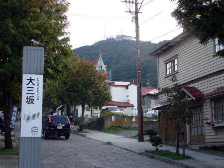 ![]() 大三坂(だいさんざか) 函館西部エリアには、海岸から函館山にかけて幾つもの坂道がある。どの坂道も、函館山を見上げる風景と港を見下ろす風景のそれぞれが楽しめる。 |